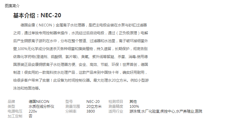 泳池循環(huán)過濾設(shè)備 有兩種可供挑選:一種是以泳池過濾砂缸、循環(huán)水泵、石英砂為主的傳統(tǒng)泳池過濾設(shè)備;一種是以泳池一體機(jī)為主的無機(jī)房一體泳池過濾設(shè)備,設(shè)備類型有壁掛式、地埋式、平嵌式、臺階式的。 傳統(tǒng)砂缸 一體式 泳池消毒設(shè)備 有許多品種可供挑選:投藥計(jì)量泵、投藥器、泳池消毒藥劑、投藥桶、臭氧發(fā)生器、鹽氯機(jī)、銅銀離子發(fā)生器 水質(zhì)監(jiān)測設(shè)備 水質(zhì)監(jiān)控儀、驗(yàn)水合 水下照明設(shè)備 泳池水