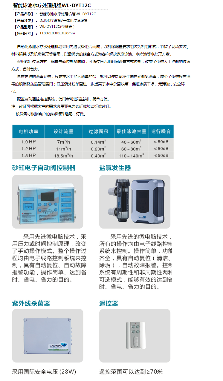 智能泳池水療處理機(jī)組 WL-DYT12C