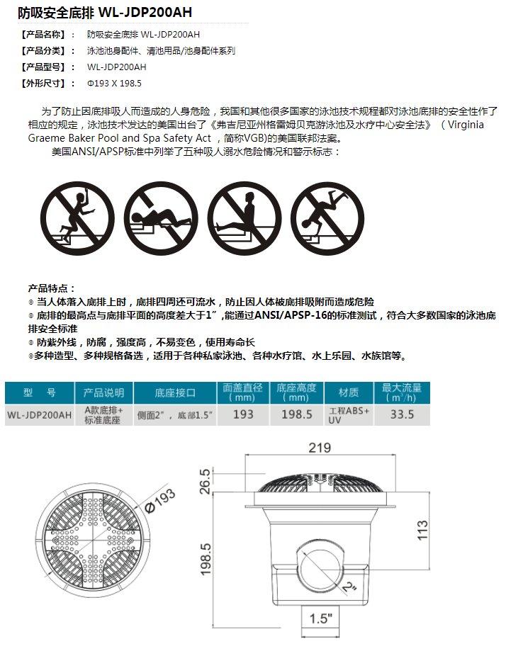 池身配件系列-防吸安全底排 WL-JDP200AH