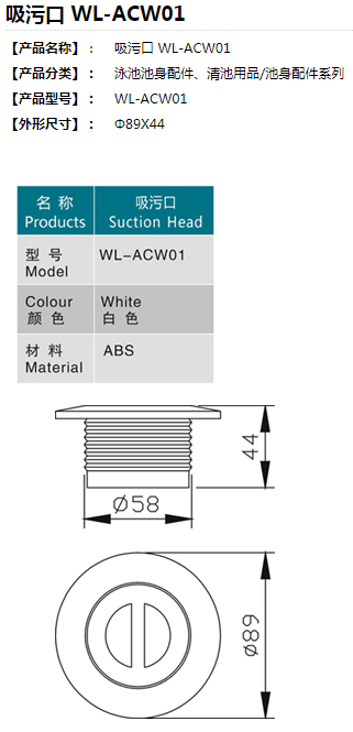 池身配件系列-吸污口 WL-ACW01
