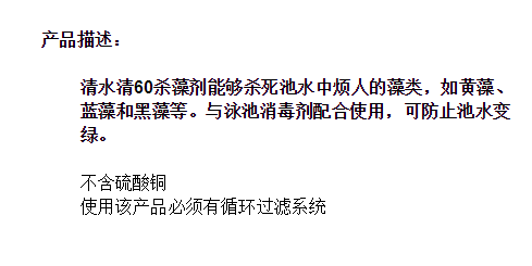 泳池循環(huán)過(guò)濾設(shè)備 有兩種可供挑選:一種是以泳池過(guò)濾砂缸、循環(huán)水泵、石英砂為主的傳統(tǒng)泳池過(guò)濾設(shè)備;一種是以泳池一體機(jī)為主的無(wú)機(jī)房一體泳池過(guò)濾設(shè)備,設(shè)備類型有壁掛式、地埋式、平嵌式、臺(tái)階式的。 傳統(tǒng)砂缸 一體式 泳池消毒設(shè)備 有許多品種可供挑選:投藥計(jì)量泵、投藥器、泳池消毒藥劑、投藥桶、臭氧發(fā)生器、鹽氯機(jī)、銅銀離子發(fā)生器 水質(zhì)監(jiān)測(cè)設(shè)備 水質(zhì)監(jiān)控儀、驗(yàn)水合 水下照明設(shè)備 泳池水